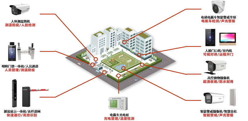 3.管理需求大,高空拋物、垃圾分類、車輛違停、消防安全等都需要監(jiān)管,目前主要傳統(tǒng)方式為物業(yè)的人力監(jiān)管,人力成本高,且監(jiān)管效果不理想,因此需要更加有效的安全防范手段。