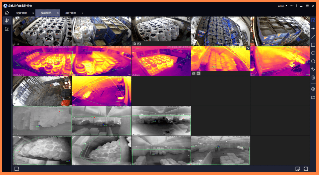 在化工園區(qū),火災(zāi)是最為常見(jiàn)的安全隱患之一。熱成像監(jiān)控系統(tǒng)通過(guò)實(shí)時(shí)監(jiān)測(cè)園區(qū)內(nèi)各個(gè)區(qū)域的溫度變化,能夠及時(shí)發(fā)現(xiàn)由于設(shè)備故障、管道破裂或化學(xué)品泄漏引發(fā)的火源。例如,熱成像設(shè)備可以檢測(cè)到設(shè)備過(guò)熱、火焰或煙霧引起的溫度異常,從而及時(shí)發(fā)出警報(bào),極大提高了火災(zāi)響應(yīng)速度,降低了火災(zāi)發(fā)生的風(fēng)險(xiǎn)。
