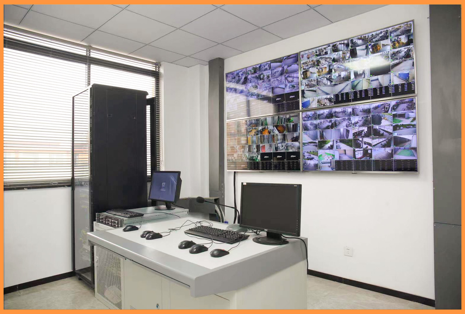 主控室全景監(jiān)控: 視頻綜合平臺(tái)實(shí)現(xiàn)畫面分割、輪巡、上墻顯示。