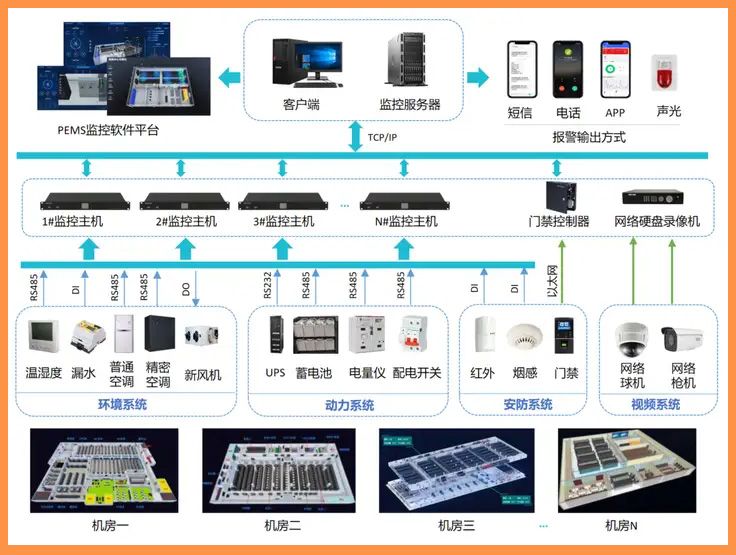 系統(tǒng)集成:將環(huán)境監(jiān)控系統(tǒng)與其他機(jī)房管理系統(tǒng)(如資產(chǎn)管理系統(tǒng)、運(yùn)維管理系統(tǒng)等)集成,實(shí)現(xiàn)全面的管理。