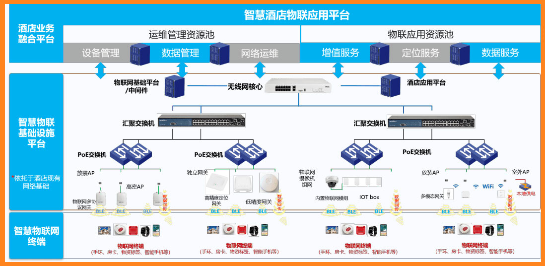 全光網(wǎng)絡(luò)架構(gòu):采用光纖到房間(FTTR)模式,每個客房部署獨立光貓,提供千兆甚至萬兆接入能力